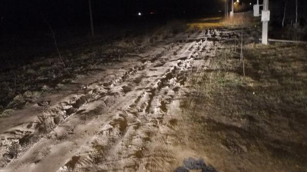 Весной и осенью отсутствует полностью. К домам не добраться. При том,что другая часть деревни в новом асфальте уже 3-й год.