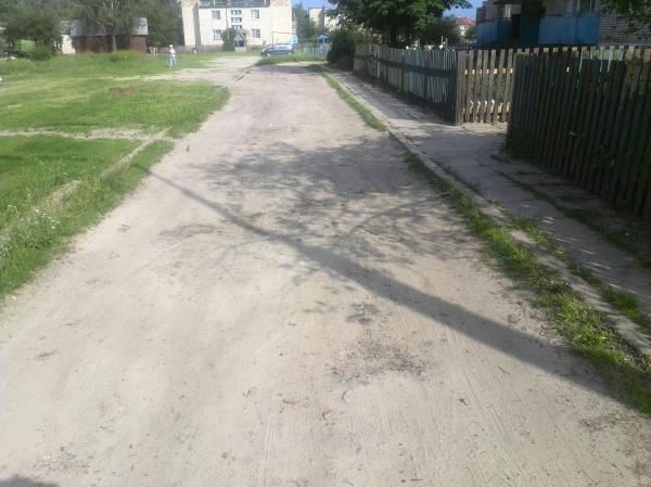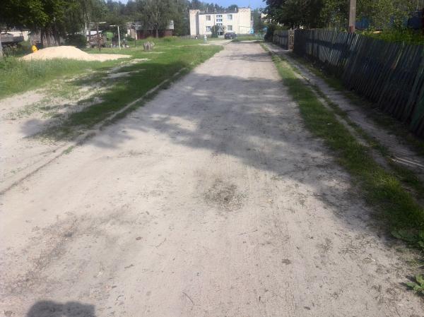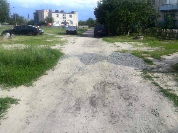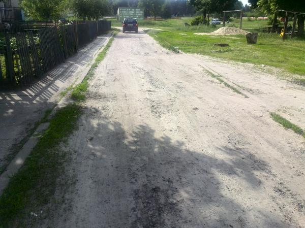 разбитая дорога, местами просматривается асфальтовое покрытие. почему-то уверен, что на балансе дэу-151 дорога стоит как "с усовершенствованным покрытием". старожилы говорят, что с 1977 года дорога не ремонтировалась