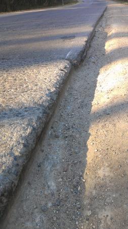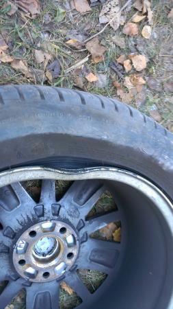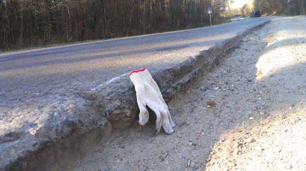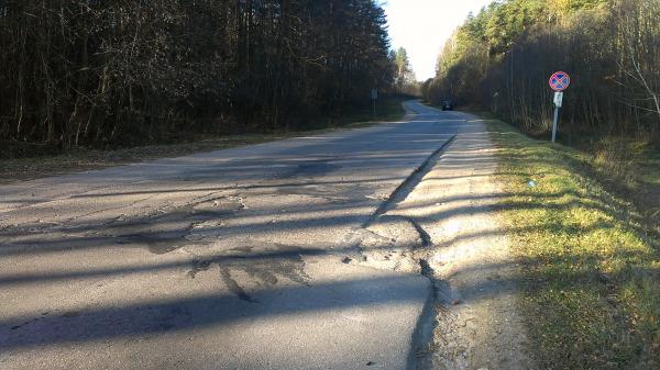 Дорога Н9123(Радошковичи-Олехновичи), выезд из г.п.Радошковичи. Из-за разницы в ширине проезжей части в населенном пункте и сразу за границей населенного пункта (резком сужении проезжей части) при встречном разъезде с грузовиком, двигавшимся с большой скоростью в сторону населенного пункта пришлось уводить автомобиль вправо на обочину, которая была для этого не подготовлена. Результат - искривление диска колеса.