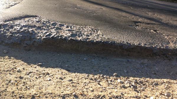Обочина не соответствует требованиям СТБ 1291-2007, пункт 6.2, таблица 6, позиции 10-13. Занижение обочины относительно проезжей части в отдельных местах оставляет более 10 см.