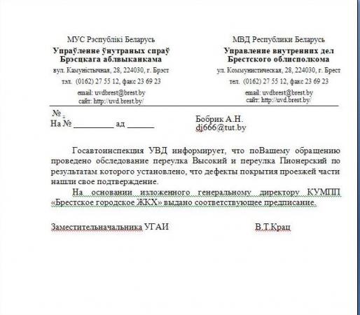 Ответ из ГАИ