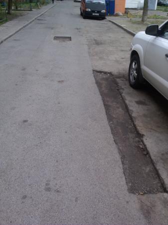 Примерно две недели назад в дворовых территориях, прилегающих к дому по адресу Руссиянова 24, работники ЖЭСа вырезали "проблемные участки дорожного покрытия". С тех пор мы ездим по дыркам глубиной не менее 4 см.