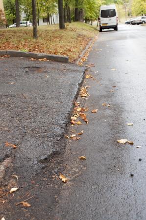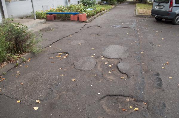 Добрый день. Летом 2015 года положили новый асфальт по улице Клумова. После укладки на заезде к дому Щербакова 35 остался перепал новой дороги и старого покрытия. А во дворе дома ямы не ремонтировались. При этом в 2014 году начали выпиливать сегменты так и оставили( на фото видно)В данный момент рядом с домом ведутся работы по уменьшению бордюра на переходе. Прошу принять меры.