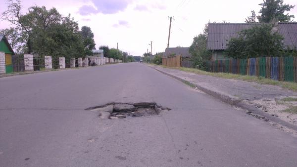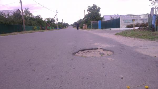 улица Тихомирова в г.п. Красная Слобода (как ехать из Солигорска на д.Новый Рожан). На данном участке дороги более 5 глубоких ям, которые не только затрудняют движение, но и приводят к поломке автомобилей. Среди них только 1 просевший люк. Кроме того, на данной улице не обозначена цветом ни одна искусственная неровность, и они полностью сливаются с дорожным покрытием.