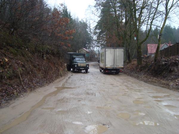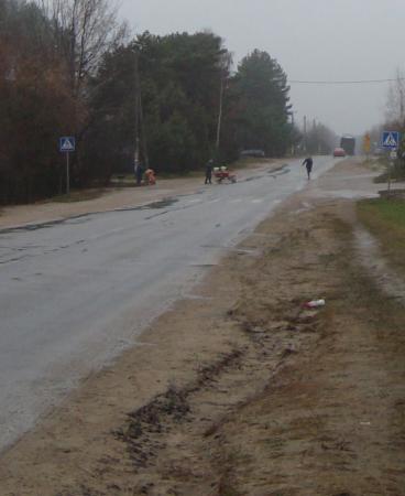 Дорога это проездная, ведет в соседние населенные пункты: Ляховщина, Крыжовка, Подгорье и целый комплекс дачных поселков. Проблема не решается уже 2 года не смотря на множественные выездные комиссии различных госорганов и жалобы жителей! С 1 декабря в очередной раз сократили маршрут движения маршрутного такси и пешеходы к конечной остановке должны летать по воздуху или двигаться по проезжей части: нет ни обочин не тротуаров. А дети 3 км идти к остановке маршрутки, чтобы доехать до школы! И это при том, что Ратомка находится в 5 км от МКАД и интенсивность движения по ул. Центральная составляет более 350 машин в час, а ширина дорожного полотна в некоторых местах около 1,5 м.