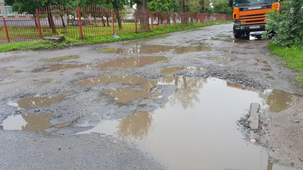 При повороте с улицы Казинца к магазину №3 "СТРОЙМАТЕРИАЛЫ, МЕБЕЛЬ» невозможно проехать не "убив" подвеску. Глубокие ямы, выбоины, отсутствие асфальта