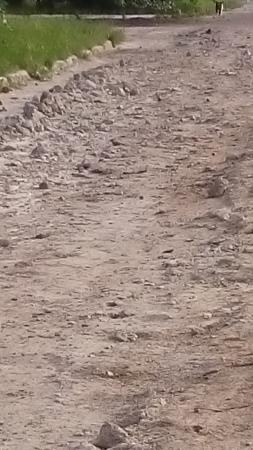 После ремонта эта дорога стала еще хуже чем была.Эту дорогу подсыпали наверно строительным мусором и по ней уже совсем нельзя пройти.Здесь и камни и кирпичи с глиной. А что будет после дождя? Пожалуйста помогите нам с ремонтом этой дороги.