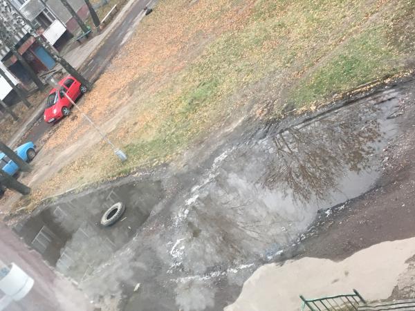 По адресу пгт Урицкое,ул Молодежная 8, на протяжении 15лет, как только пройдёт дождь, наполняются лужи. Проехать на авто к подъезду невозможно, подойти тоже. Вся вода поступает в подвал дома, отсюда антисанитария( появляются в подъезде блохи), подмывание фундамента и прочее