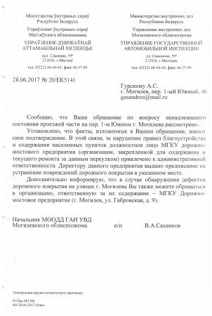 • Получен ответ из ГАИ 19 июня 2017 отправлен запрос в ГАИ