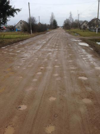 Витебская обл, Браславский р-н, агр. Козяны, улица Садовая. Она же автомобильная дорога с номером Н2107 Козяны - Дубровка (на втором фото есть знак с номером дороги). Согласно карте автодорог и заявлениям местных властей, на этой дороге уже лет 10 как лежит асфальт. По факту ездить по этой дороге невозможно. По ней даже ходить нужно аккуратно. В таком состоянии эта дорога вплоть до деревни Дубровка.