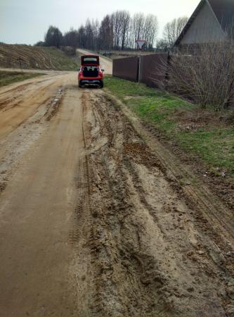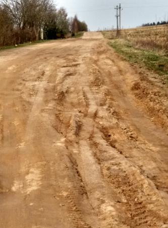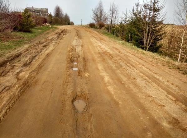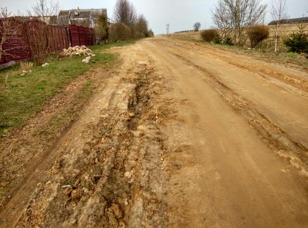 Доругу разбили уборочная техника, комбайны, самосвалы и трактора. С осени до тех пор дорогу не отремонтировали. По дороге стало невозможно ездить.