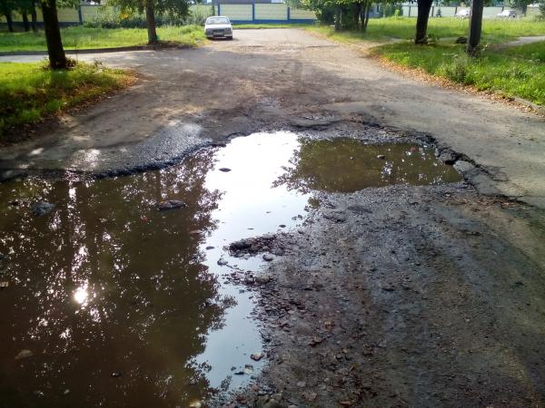 Огромная яма на всю ширину проезжей части находится на улице О.Кошевого, после проезда площадки перед Домом Культуры, в сторону парковки возле дома №7. Яма постоянно наполнена водой, из-за чего невидно ни кусков асфальта, ни огромных камней, ни арматур, ни канализационного люка. При проезде на автомобиле с низким просветом есть опасность разрыва тормозной магистрали, отрыва глушителя, прокола шин. Этот участок примыкает к площадке Дома Культуры, которую активно используют на мероприятиях с проведением концертов, установки зон активности для детей, а после проезда такой ямы на дороге автомобиль может быть поврежден, что приведет к аварийной ситуации на дороге, в результате которой могут пострадать дети. Люк, находящийся в этой яме, без каких-либо опознавательных знаков, может иметь вокруг себя полость, которая в любой момент может обрушить остатки асфальта на приличную глубину, что неоднократно случается. Нужно принять меры!