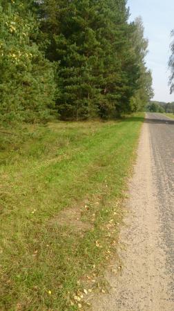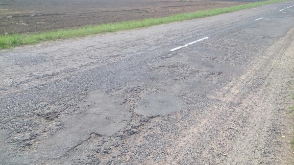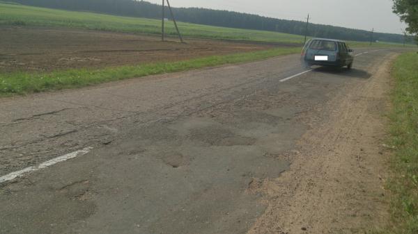 До леса ещё дорога более менее, но здесь она не в идеальном состоянии и видно что просит замены или хотя бы залатания проблемных мест. Здесь дорога разбита на повороте, многие водители выезжают навстречку чтобы объехать их. Это очень опасно и может сыграть злую шутку.