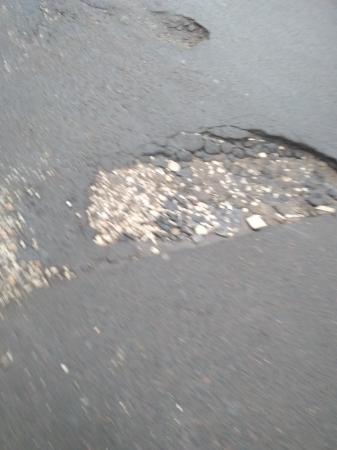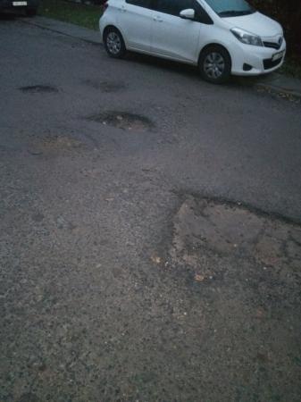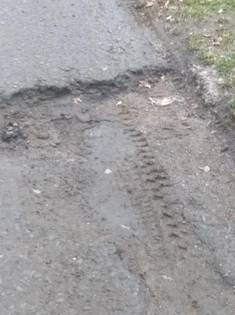 Это заезд в поликлинику #20 с улицы Одоевского, повернуть ща 24-ым домом. Ямы сфотографированы сверху,в основном, но на месте будет видно, что они глубиной по щиколотку некоторые. Проезд во дворе очень узкий, две машины не разъедутся, из-за припаркованных машин приходится в эти ямы просто сползать, чтобы не повредить подвеску. Заезд в поликлинику за 20-ым домом имеет ещё более глубокие ямы. Их отраду в другой заявке-сюда столько фото не помещается.