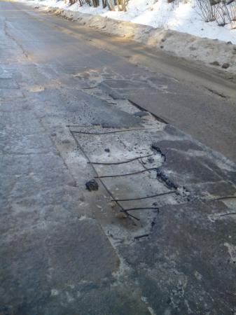 Дорога Радошковичи-Олехновичи, бетонка, ямы настолько большие, что повылазила арматура. За дороги плати - а ямы на дорогах. Неоднократно пробивали колеса. И где же безопасность движения на дорогах?