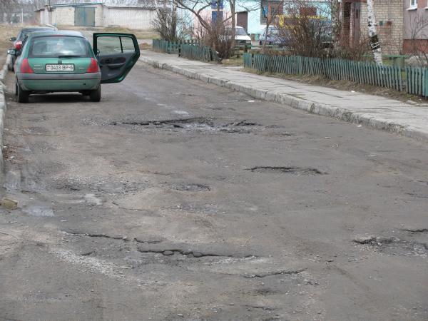 На снимке один из самых безобидных участков подъездной дороги к домам 27 и 28. Ремонта не было около 10 лет. Отсутствие ливневой канализации превращает дворовую территорию, при хорошем дожде, в одну большую лужу.