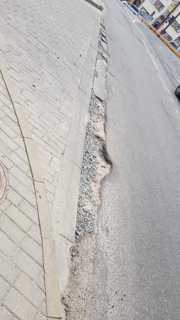 Ямы на повороте с пр. Космонавтов на ул. Красноармейскую.