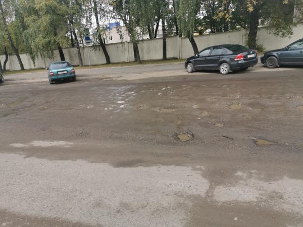 Данная дорога в таком состоянии уже более 3-х лет, по этой дороге люди едут на заправку беларуснефть, на автомойку, на различные предприятия, много ездит спец техники организации ДСК. Трафик машин очень большой для данной дороге , в час проезжает не менее 200 машин. Город ремонтировать не хочет, говорят что пускай организации ремонтируют которые по ней ездят, но организации этого не делают.