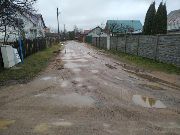 Дорога по улице Петровичская (исторически это центральная улица деревни) постоянно разбита, огромная лужа когда дождь, водостока нет, глубокие ямки объехать уже никак нельзя. Не раз просили асфальтировать в сельсовете, да воз и ныне там. Насчет лужи обещали исправить, но уже практически год прошел и ничего не происходит. Просим помочь с решением вопроса.