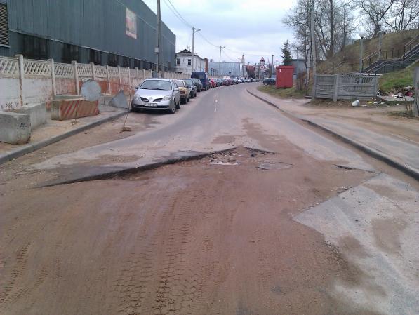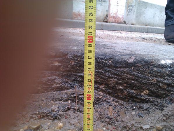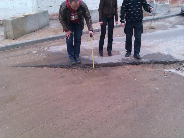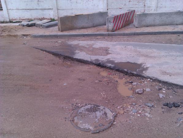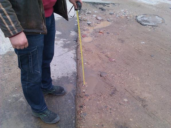яма - 18 см!!! дорожники песочком присыпали, а после дождя песок размыло. в дождь или ночью вообще можно машину разбить.