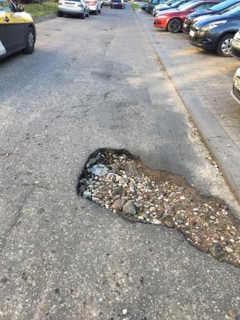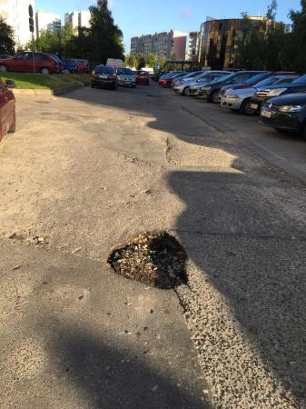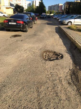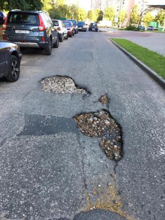 Выбоины на дорогах от Турана до Евроопта, ужасная дорога.