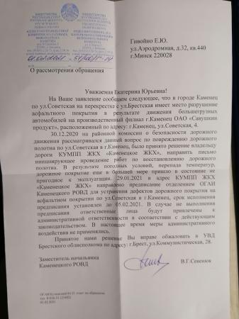 г. Каменец, пересечение ул. Советской и ул. Брестской, напротив дома №7