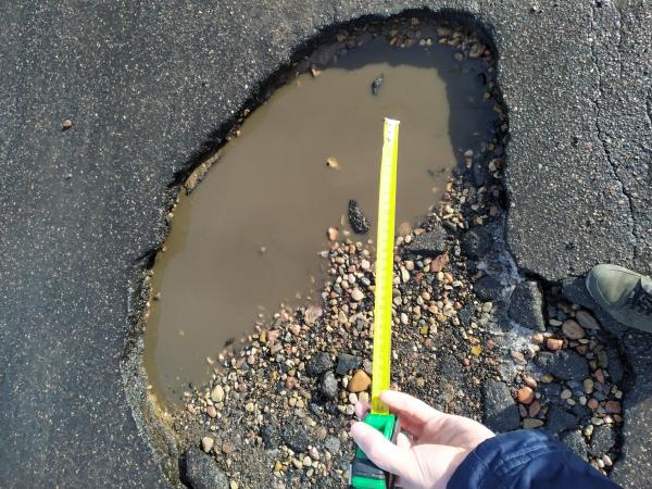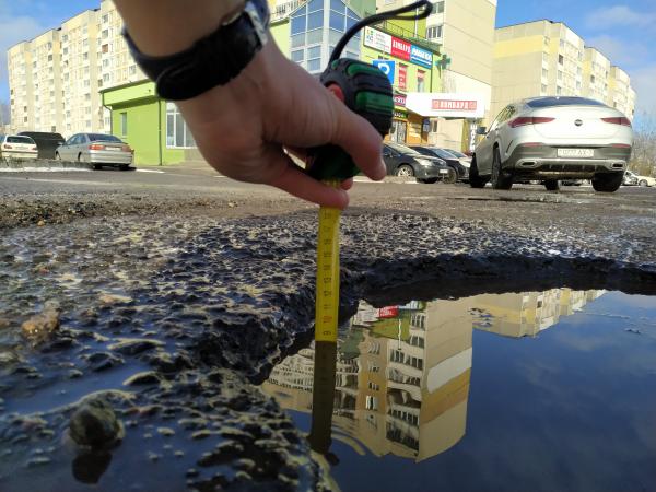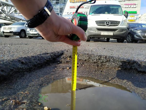 Ямы возле магазина "Дионис" более 5 см в глубину и более 30 см в ширину.