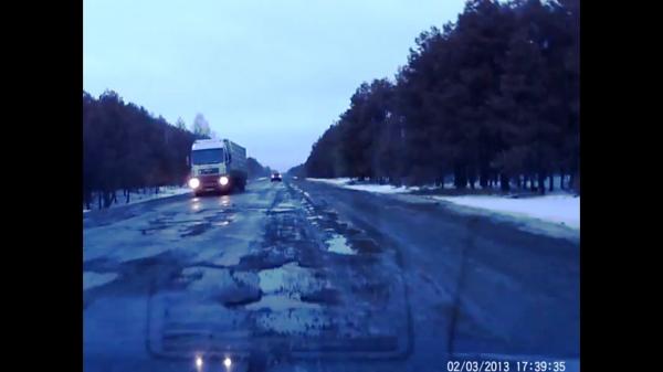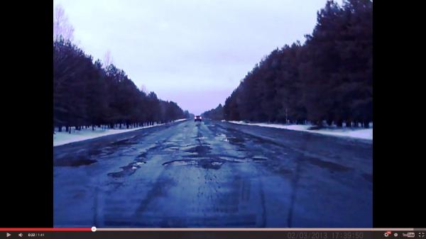 вот такая у нас трасса М10! сложно назвать трассой!!!! и все это от Пинска до Житкович! ехать просто нереально!!! возле самого Лунинца почти год назад срезали асфальт до бетонки, бетонку развезло за зиму, скоро там будет как проселочная дорога!!!!!