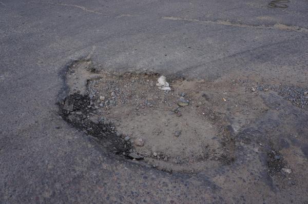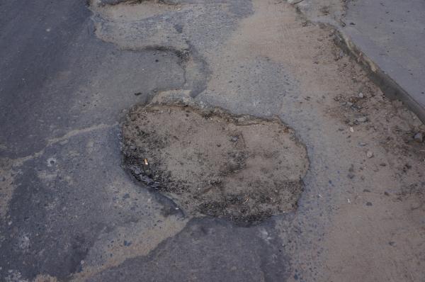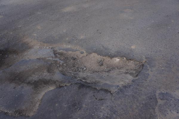 При повороте с переулка Гаражного на кольцо Космонавтов несколько огромных грубоких ям, что не соответствует требованиям СТБ 1291-2007, угрожает безопасности дорожного движения, делает невозможным передвижение транспортных средств.